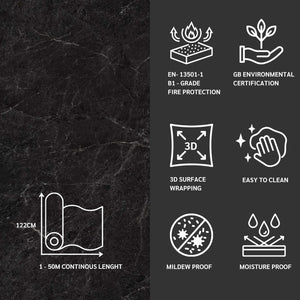 Nero Marquina Black | Adhesive Vinyl 122cm Wide (Sold by the Meter)