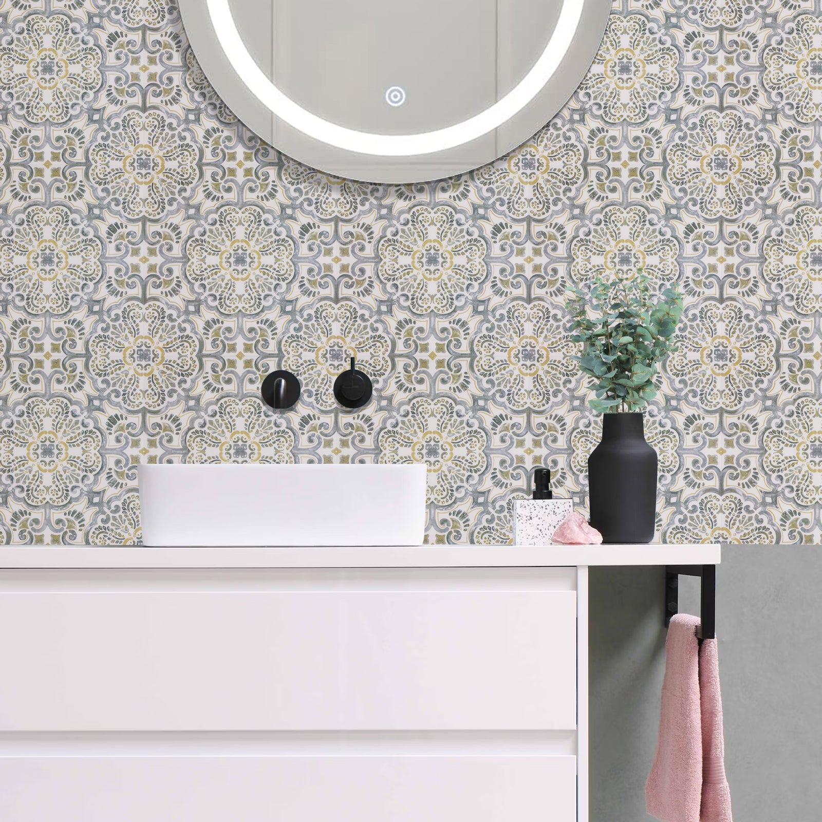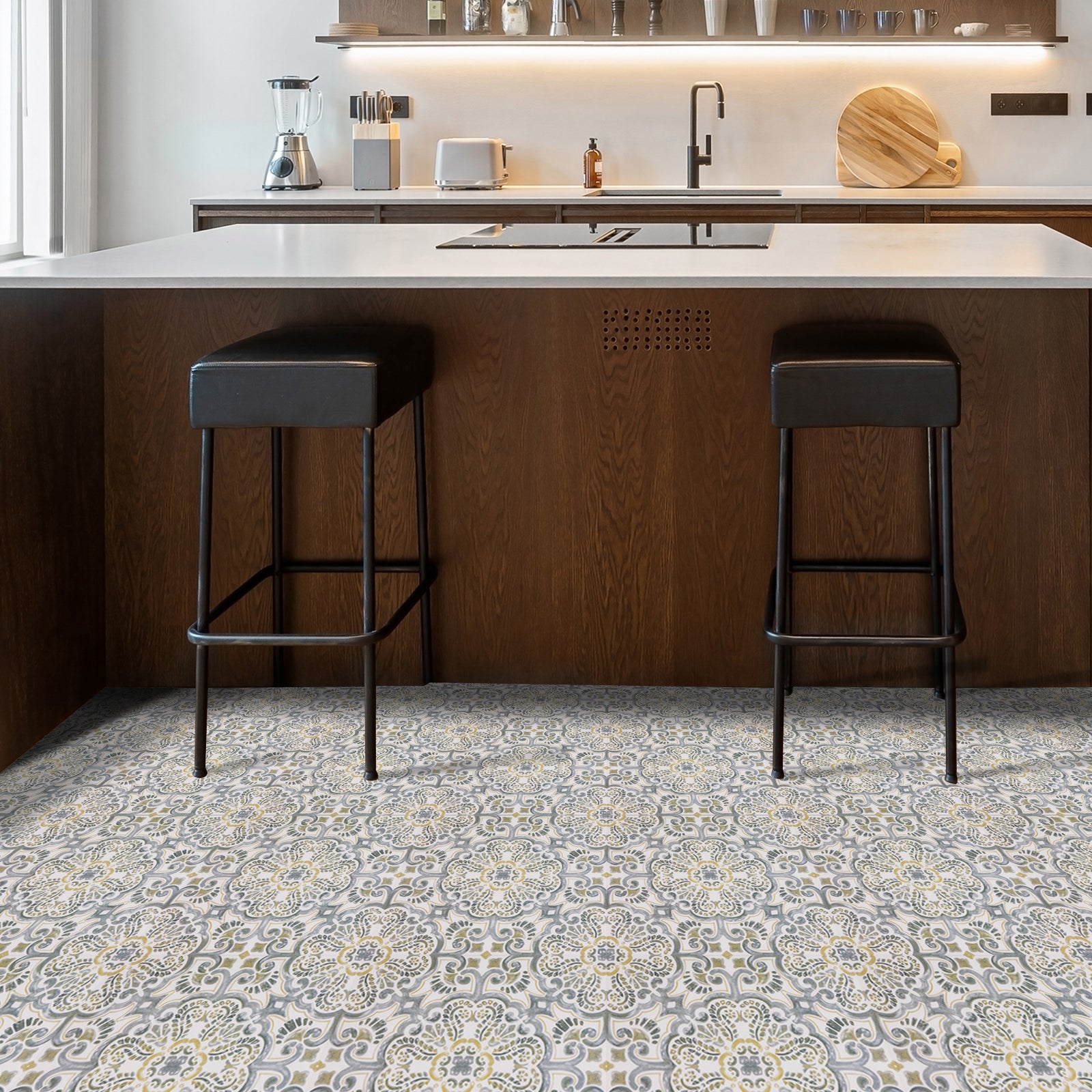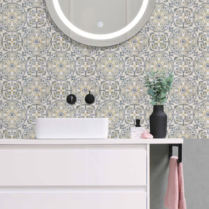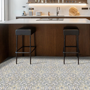 Elevate your interior with the vintage charm of Seville Gold.This design blends ornate grey scrolls with subtle ochre-gold accents for a high-end decorative look.Perfectly suited for "quick-fix" renovations of your floors or walls, these tiles offer strong adhesion to any smooth, flat surface like melamine, acrylic, or existing tile.Like the rest of the collection, Seville Gold is a cosmetic product designed for low-traffic areas, providing a beautiful facelift without the expense of a full remodel.