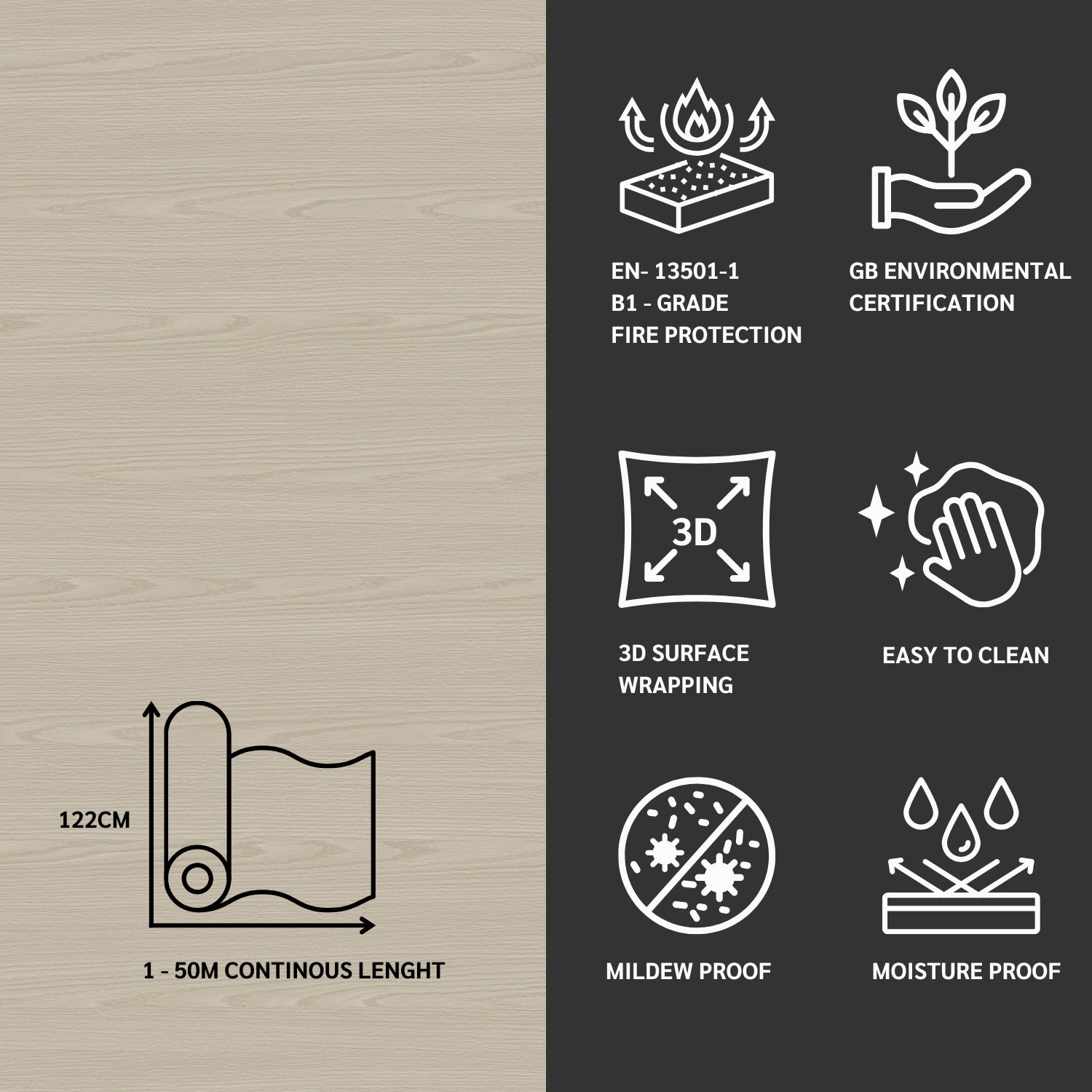 • Seamless Application: 122cm width covers standard benchtops and tables in one sheet.