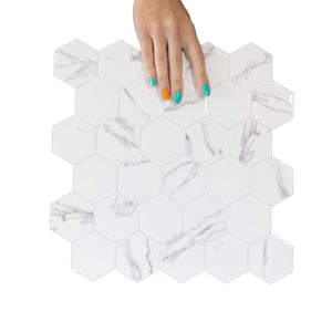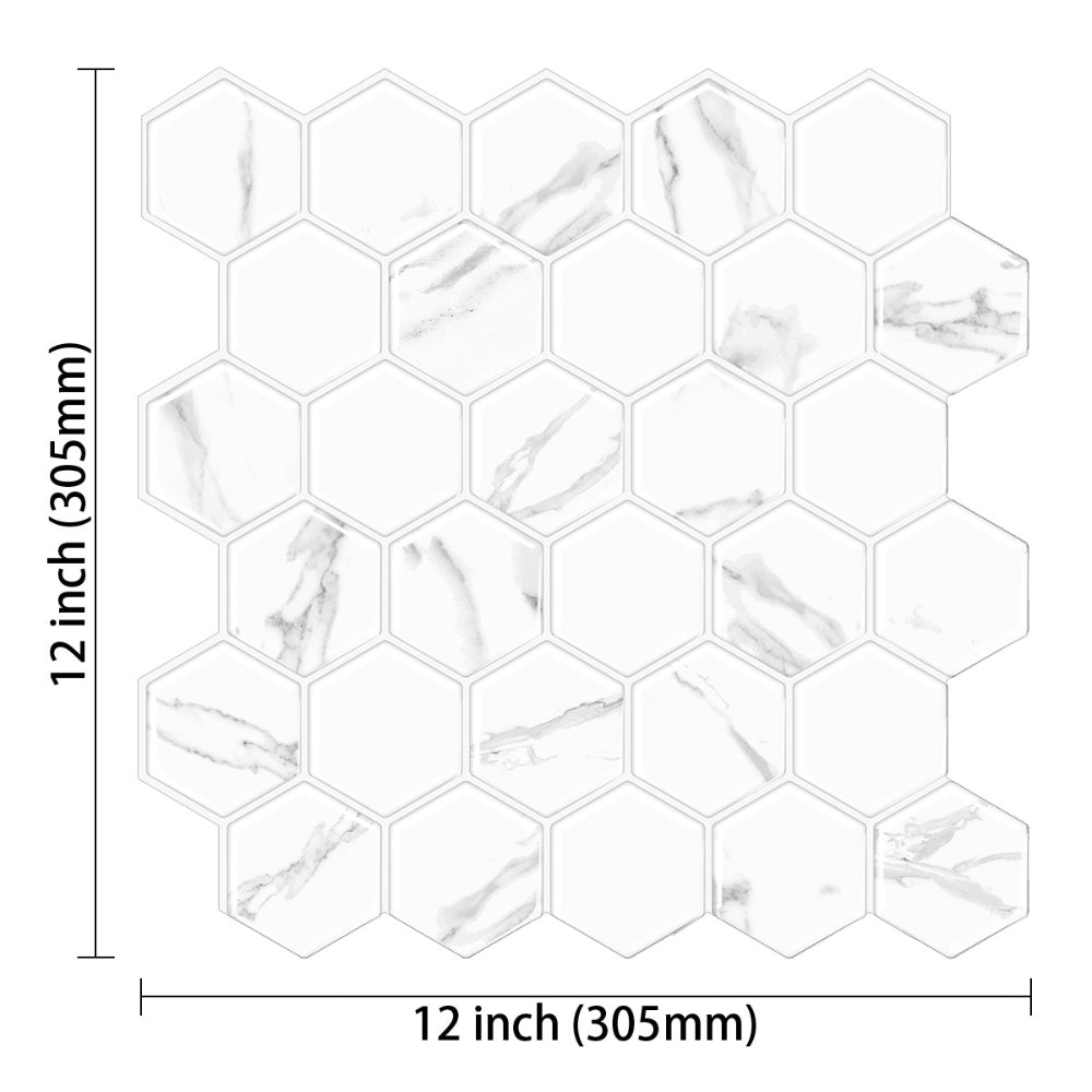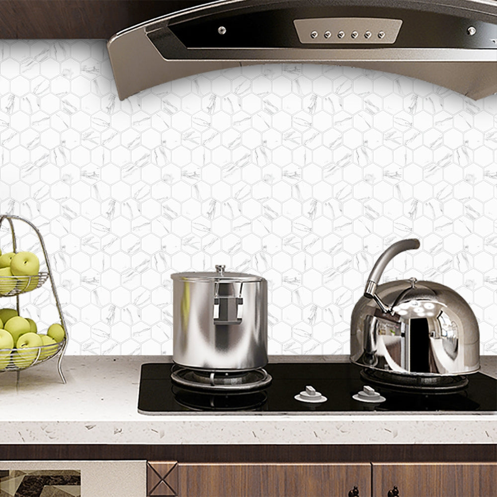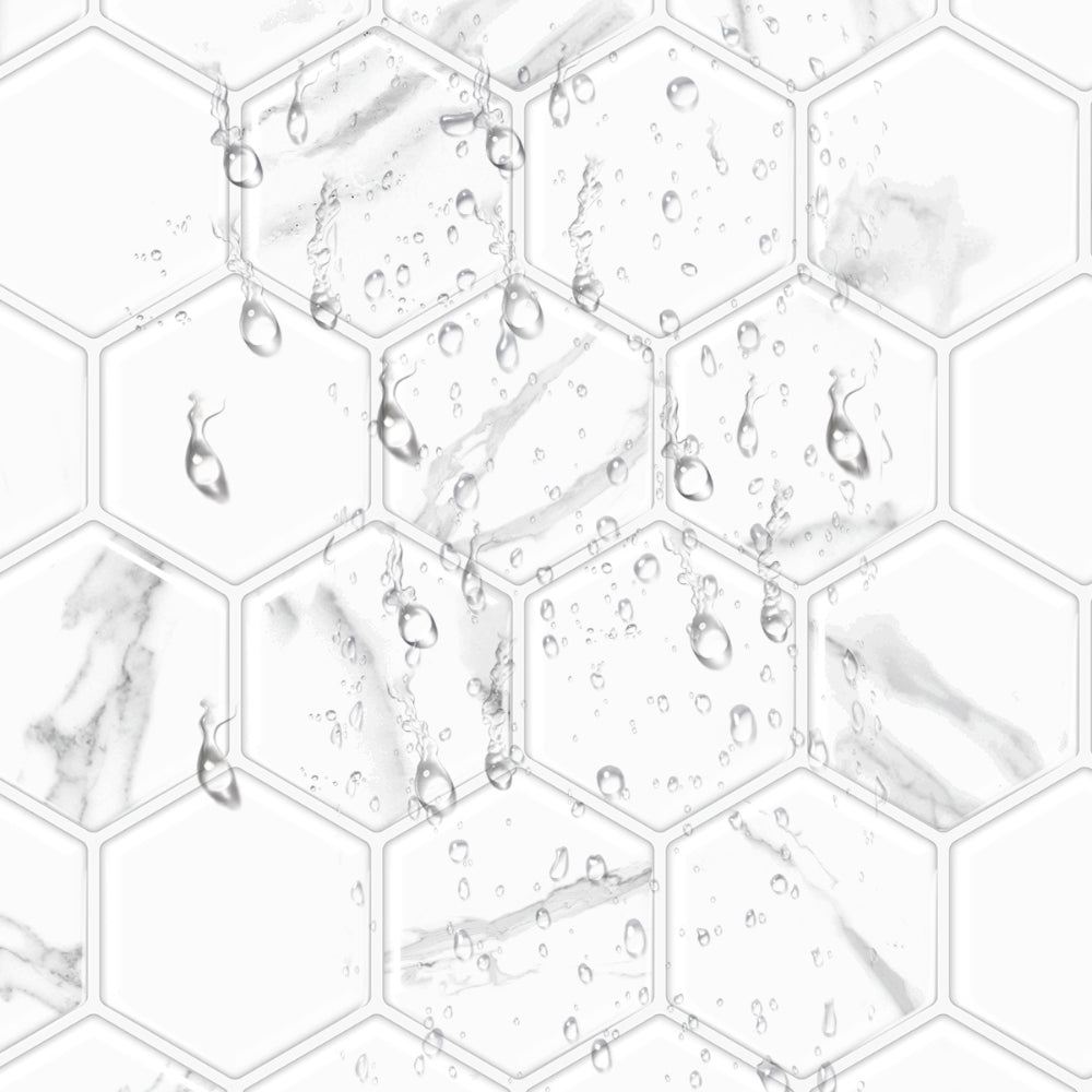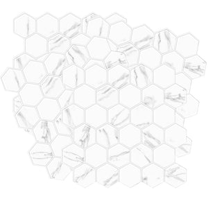 Hexagon Wall Tile | White & Grey Marble with Grey Grout - 30.5cm (W) x 30.5cm (H) x 2mm (T)