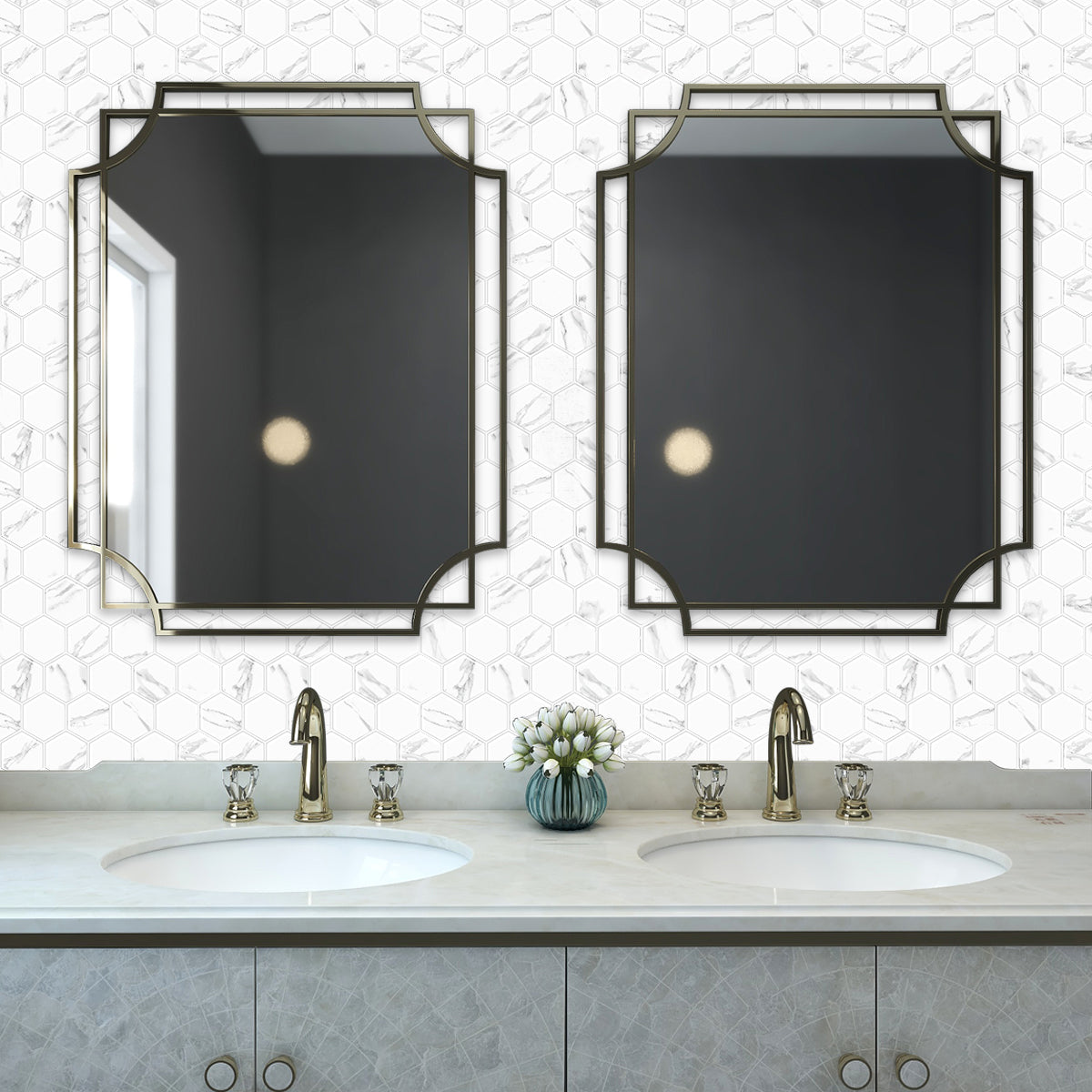 The Italian stallion is known for its handsome looks and charm and this tile does not disappoint. The white and grey marble hexagon design with grey grout is a classic tile that is durable and stylish making it the perfect choice for your home.